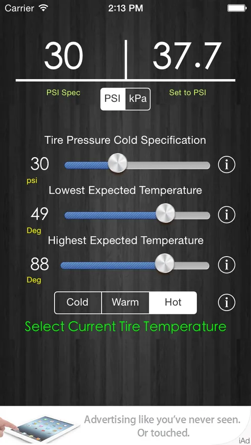 Seasonal temperature change can dramatically alter tire pressure. The purpose of this utility is to provide a procedure/guideline to adjust tire pressure correctly when tire temperature is something other than the ideal "cold" state and in the real world of driving while in changing weather conditions.