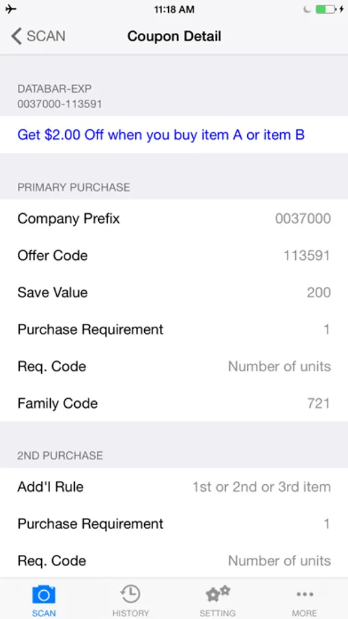 * Scan the coupon barcode to view the detail information: