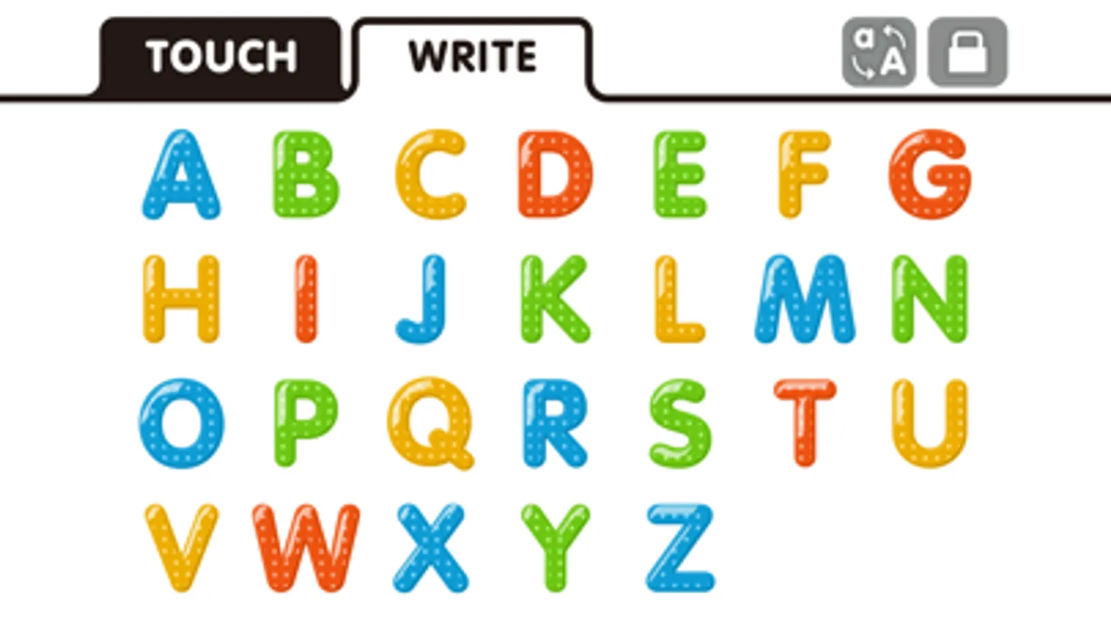 This is a fully interactive book that allows your child to learn the alphabet by "reading", "writing" and "touching".