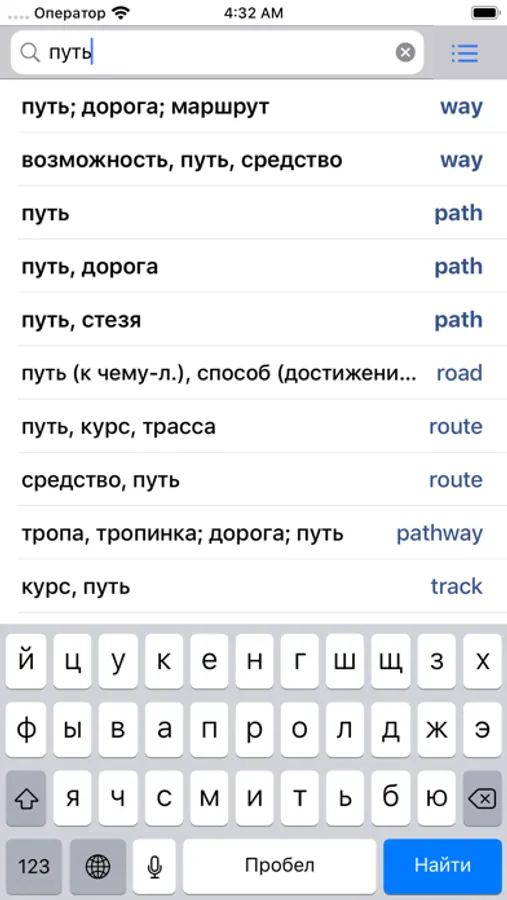 Поддерживает поиск в обе стороны. Работает без Интернета, оффлайн