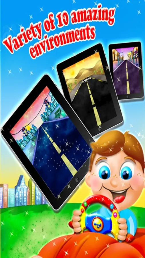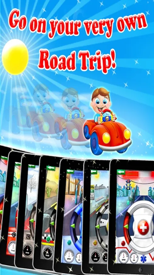 Have your little ones experience their very own driving fun. Kids Steering Wheel - driving simulator lets them feel like they are driving a car! With 10 realistic looking colorful cars and scenery your child can go on exciting adventures and develop their sense of wonder. This exciting racing car app has 3 speed levels, bumper obstacles and presents to collect along the road! Kids Steering Wheel has wonderful buttons with real sounds of a car, such as: horns, windshield wipers, blinkers, two way radio and ignition.