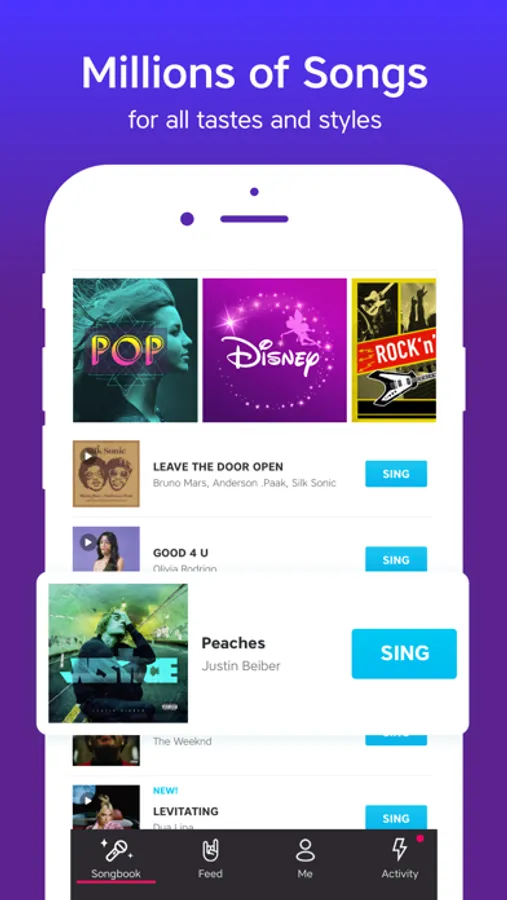 - You'll be able to sing any song as well as record, save and share as much as you like.