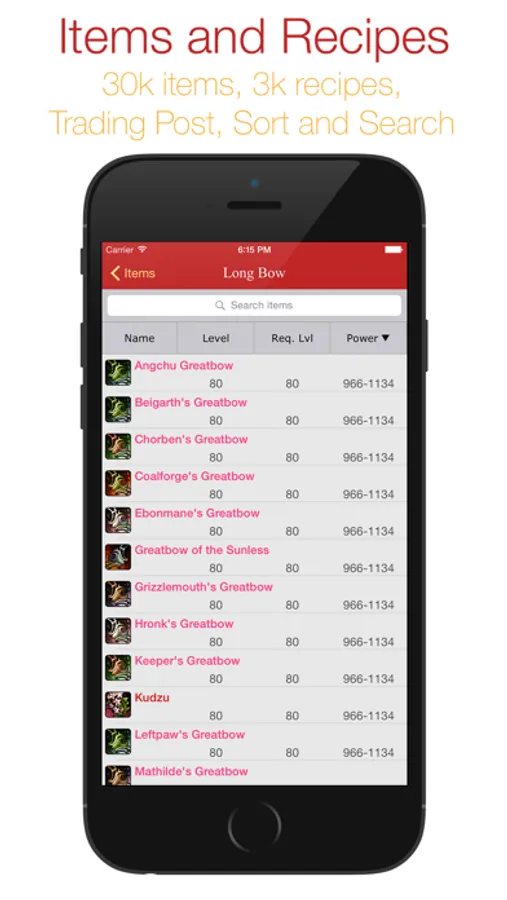 * Items & Recipes 50 000 + items & recipes. Relationships between recipe - ingredient - produced item. Completely info about each item and recipe (bonuses, characteristic, ingredients, stats, description etc). You can fast search and sort items, use different filters like rarity, item level, required level etc and check current item price, sales and offers (updated in real time).