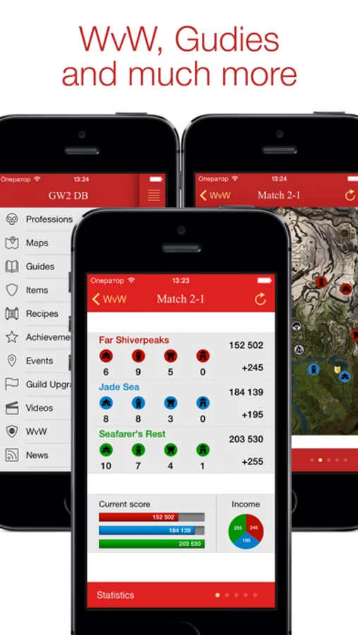 This section of app includes full information about guild upgrades, achievements and some other interesting things.