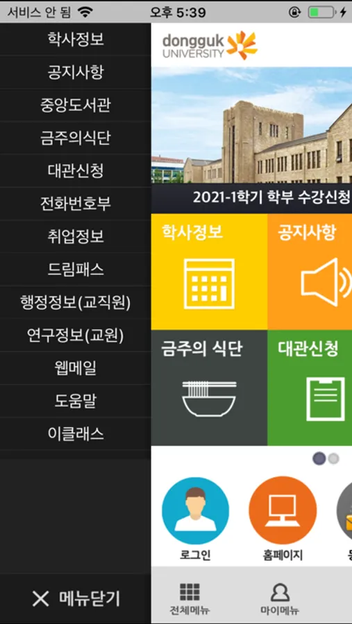 동국대학교 Smart 학사/행정 서비스 입니다.