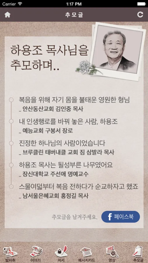 (사역,이야기,도서,영상,메세지카드,추모글)