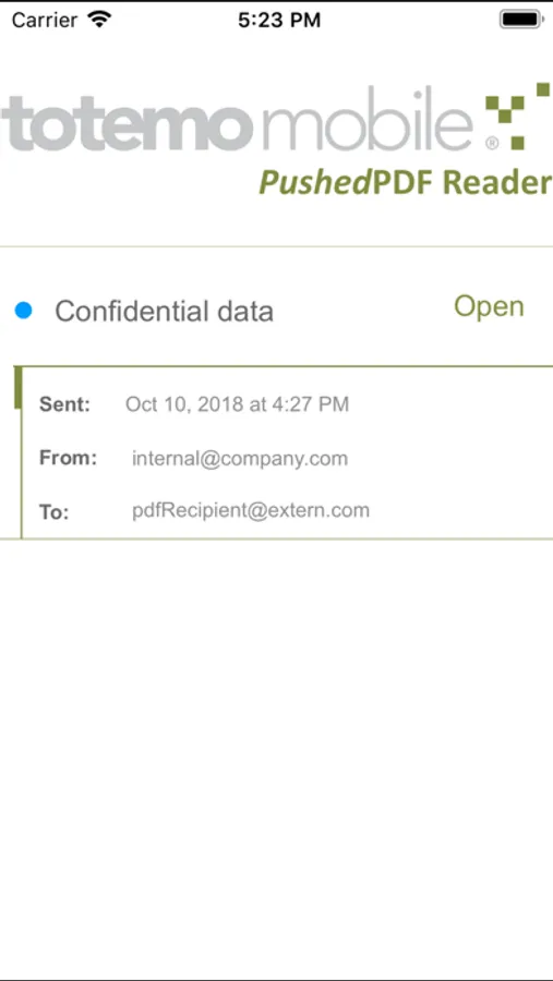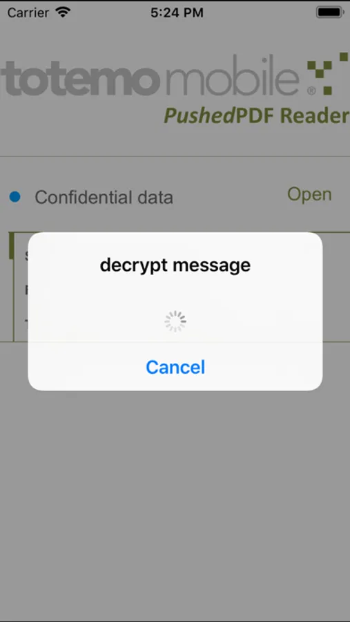 The totemomobile Pushed PDF Redaer app makes it possible to decrypt totemomail PushedPDF messages received in the Mail application of any iOS device.