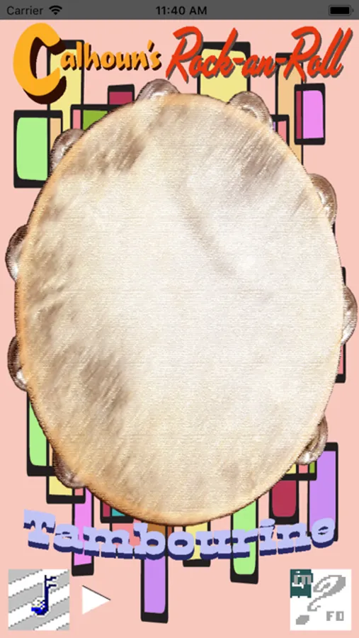 Calhoun's Cajun Rock-an-Roll Tambourine is a "tambourine" simulator. When you tap the tambourine or shake it your iPhone or iPad or iPod Touch will produce the sounds of a real tambourine. Calhoun's Cajun Rock-an-Roll Tambourine also has a "Music" and "Play / Pause" buttons. First introduced in the new to version of Big Daddy'O Bongos (bdBongos), which is also available on iTunes, there is the "Music" and "Play / Pause" buttons. You can pick a song from your device's playlist from within the app. Simply tapping the "Music" button will give you a list of the songs on your device. Pick one or more song and press the "Done" button. You will then return to Calhoun's Cajun Rock-an-Roll Tambourine were the music is ready to be play by tapping the "Play / Pause" button.