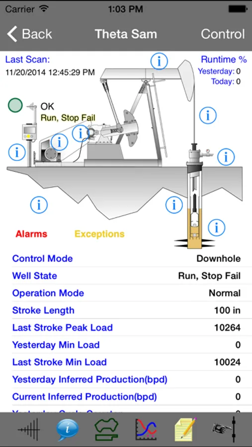 *Scanning any well to view live data for your POC, rods, wellhead pressures, loading and efficiency percentages, and a number of other important values for multiple different pumping unit types (Conventional, PCP, ESP, Mark 2, Air Balance, Rotaflex, and Hydraulic)