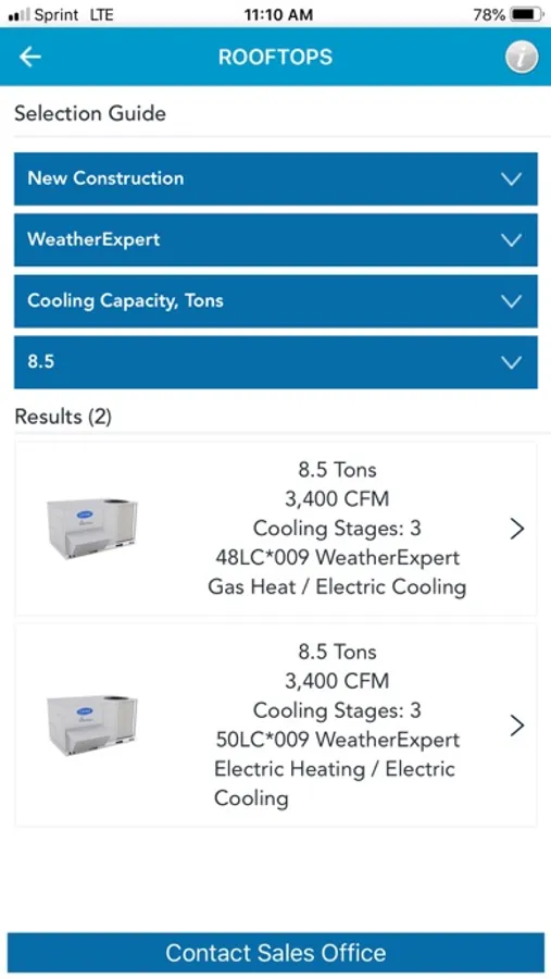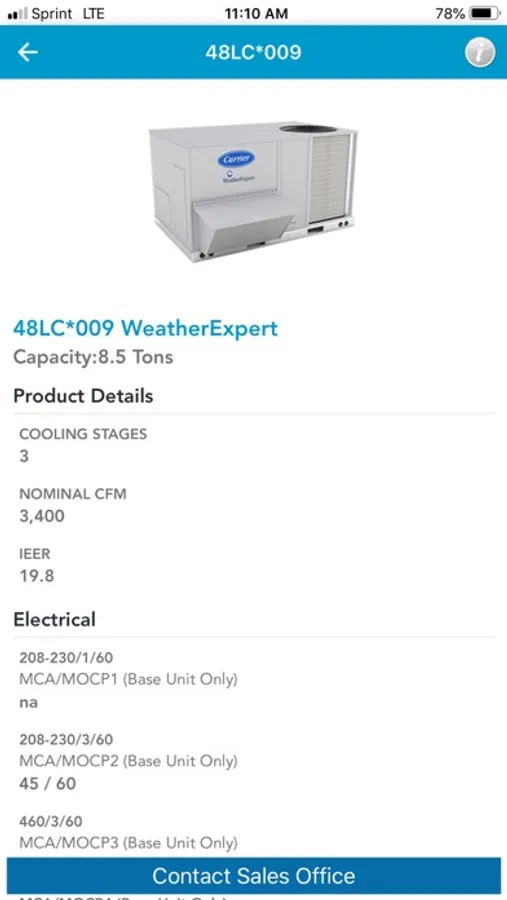 The Carrier® Rooftops app allows users to perform on the spot selection of HVAC rooftop units for both replacement and new construction, and estimate energy savings between Carrier® Weather Series units. Users can input an existing unit model number for Carrier or competitive equipment, or desired unit specifications, and obtain the optimal Carrier model for their requirements.