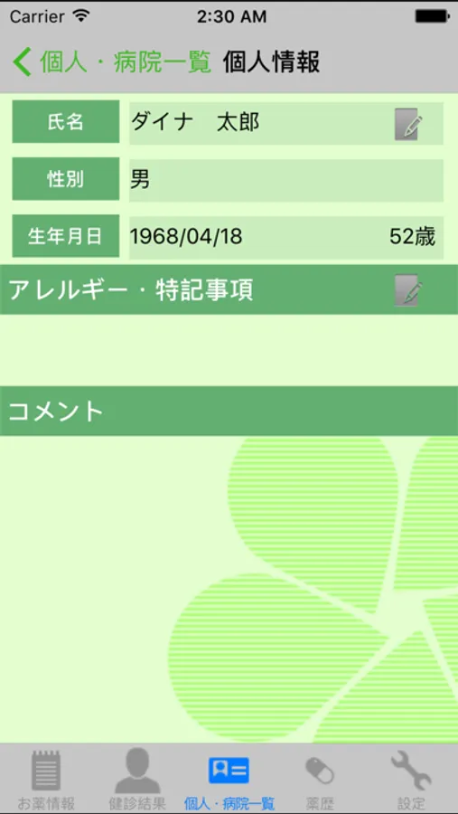 4)家族全員のお薬情報を登録可能・個人のアレルギー等を記入可能