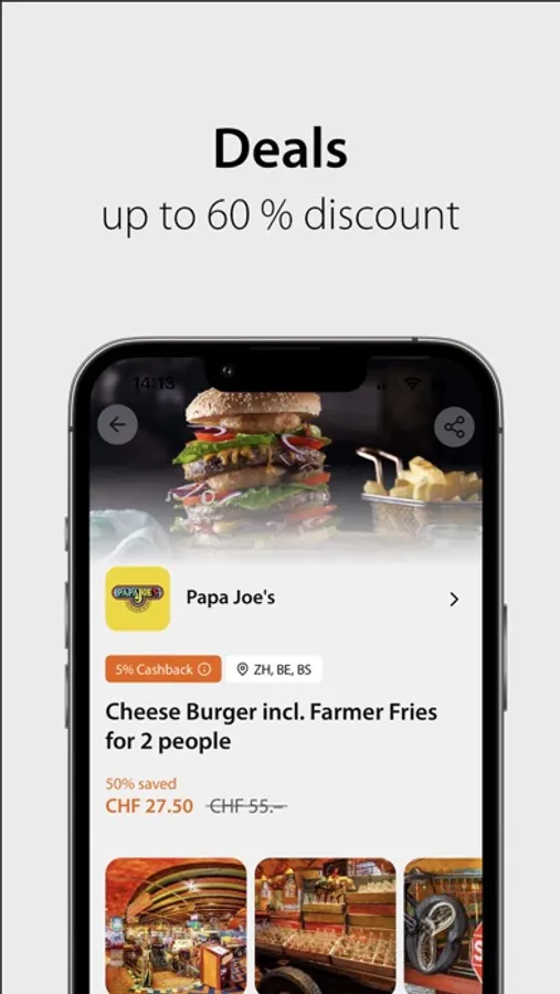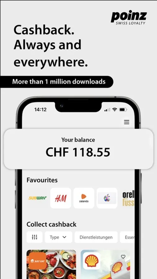 With poinz you collect cashback, pay only half for attractive deals all over Switzerland and have your loyalty cards and stamp cards always at hand in your smartphone.