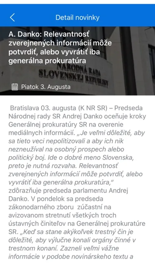 iNRSR je mobilná aplikácia Národnej rady SR. Používateľ získa informácie o aktuálnom dianí v parlamente v časti „Novinky“, o plánovaných stretnutiach a zasadaniach v časti „Kalendár“ a online prenosy z rokovania Národnej rady SR alebo tlačových konferencií môže sledovať v časti „tvNRSR“. Položka „Zasadací poriadok” je východiskom ku komplexným informáciám o poslancoch Národnej rady SR a ich aktivitách. Súčasťou aplikácie je aj widget InfoPanel iNRSR. Aplikácia spolupracuje s inteligentnými hodinkami.