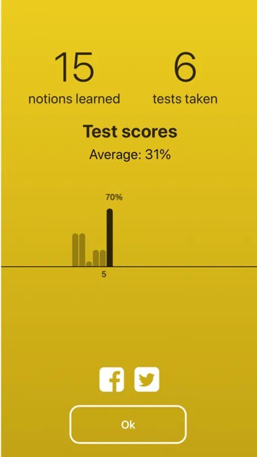● Test: Multiple choice quizzes crafted for you to test your progression. Share your progress on Twitter or Facebook.
