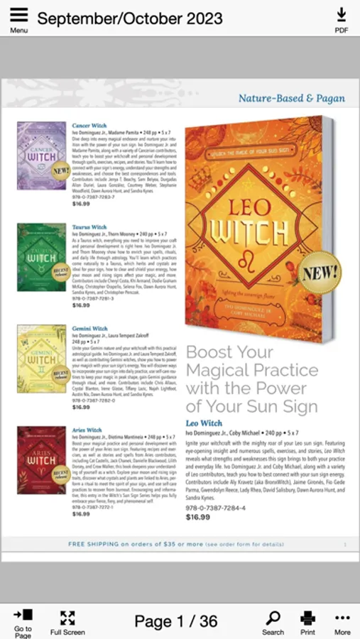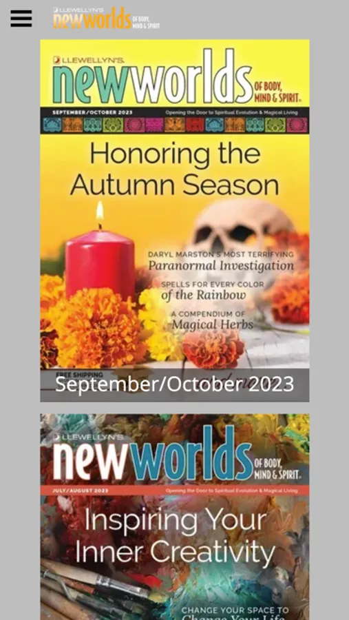 With Llewellyn's New Worlds app, you can browse and shop our diverse range of subject areas —Tarot, Divination, Magick, Occult, Alternative Health, Self-Help, Psychic Development, Astrology, Witchcraft, Paganism, and Paranormal—just as you would our print catalogs, but you now have access to much more. Just flip through the pages of a New Worlds catalog and tap a link to browse inside a book or access our free articles, encyclopedia, author interviews, additional images, and blogs. Plus, just click on our Facebook, Twitter, and Instagram accounts to join the conversation.