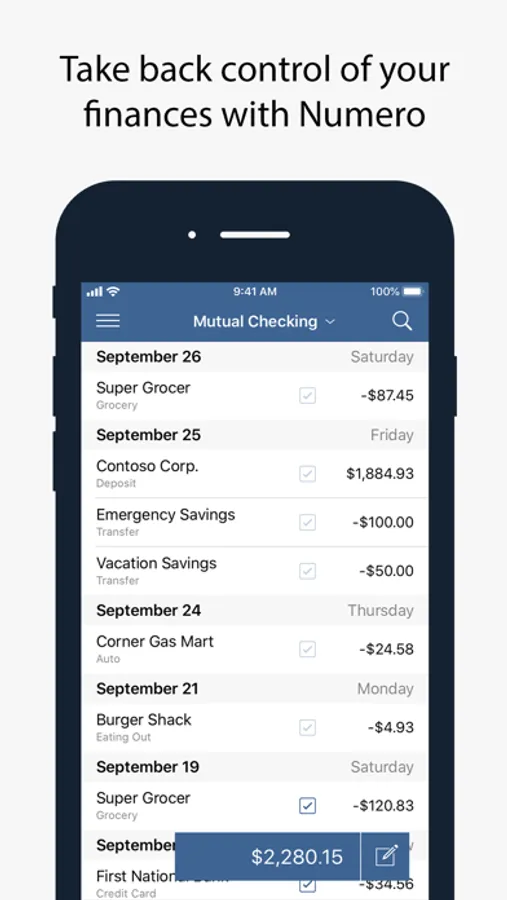 Designed to be simple and easy to use, Numero makes everything from balancing your checkbook to seeing how much you spent at the market easier than ever before.