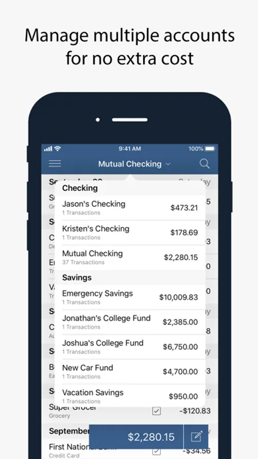 Multiple account types such checking and savings accounts are supported at no additional fee!