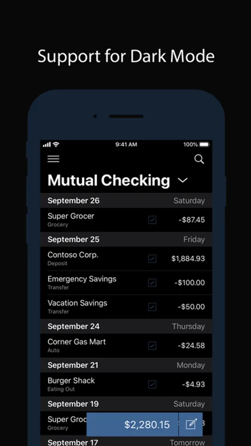 Quickly add a purchase, reconcile a deposit or search through your entire transaction history with the tap of a finger.