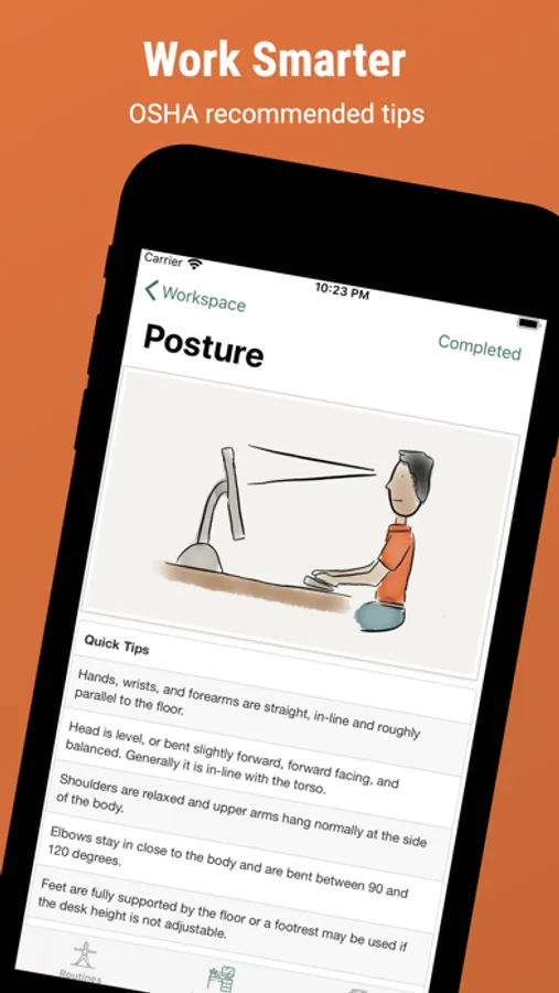 • Learn how to setup your desk, chair, monitor, mouse, and keyboard for enhanced productivity.