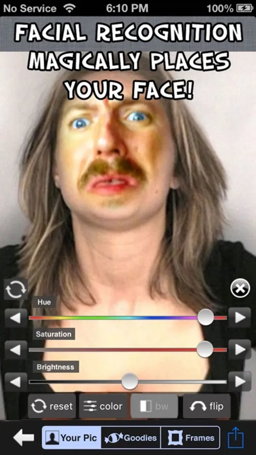 Just take a pic or choose one from your library and insert your face or your friend's into a slimeballs mugshot!
