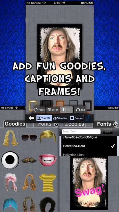 - When your done click on the goodies tab to add fun stuff to your pic!