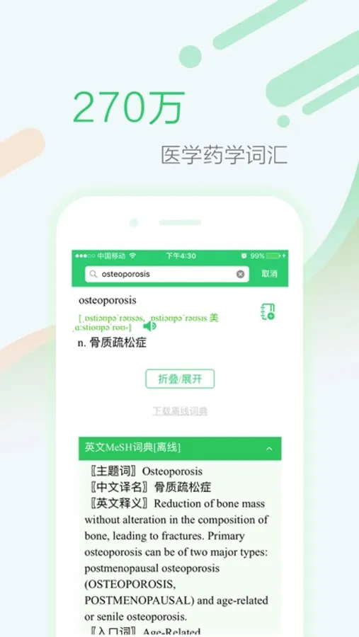 MedDic Standard is a functional dictionary software for English-Chinese translation, which can assist the clinical physicians and medicine professionals in searching for the definition of medical terms, reading English references and browsing English pages. There are two default dictionaries: English-Chinese medical dictionary and English-Chinese common dictionary. And the total vocabulary is more than 1,500,000. The main features include Dictionary Search, Reading And Translating, Text-on-photo translating, Software Setting, Favorites and History.