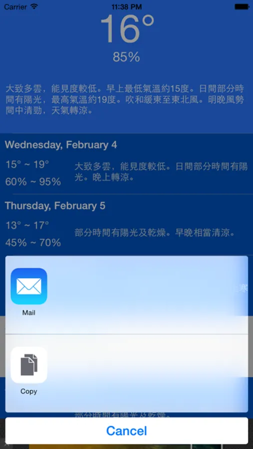 一按分享 (iOS 8) 包括 Twitter, Facebook 等其他程式。或一按複製。