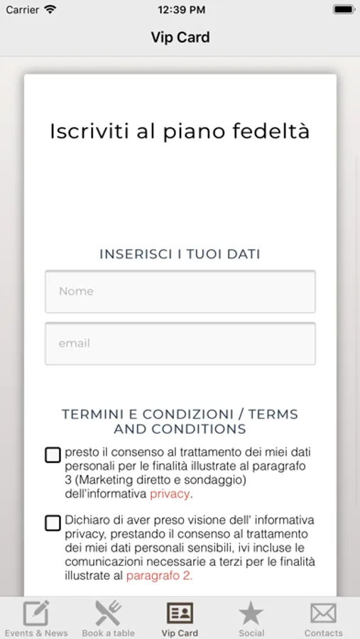 Informazioni, Photogallery, Eventi, Contatti e Contenuti speciali riservati agli utilizzatori dell'App.