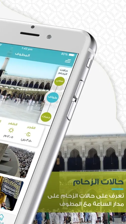 خاصية حصرية يتم بها توضيح حالة الزحام وكثافة الحجاج في شعائر الحج الثلاث (الطواف – السعي – الجمرات) مما يساعد الحاج على أداء المنسك بسهولة.