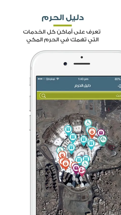 خاصية تقدم دليلاً للخدمات والمرافق بالحرم المكي بالاعتماد على خرائط الإرشاد الجغرافي الصادرة من قبل الرئاسة العامة للحرمين الشريفين.