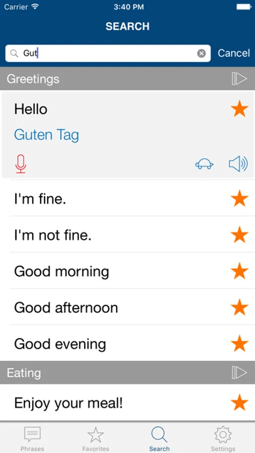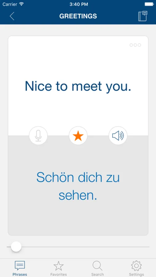 Using this app, you can learn German phrases and words from our native German speaking parrot. The parrot works together with you to practice your speaking and listening skills, wherever and whenever you are. Learning German can never be easier!