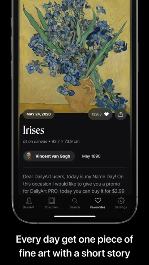DailyArt is the #1 app to learn about art history. Every day, get inspired by beautiful classic, modern, and contemporary art masterpieces and read short stories about them. Join the community of art lovers for whom DailyArt is something that enlightens their day, every day. For free!