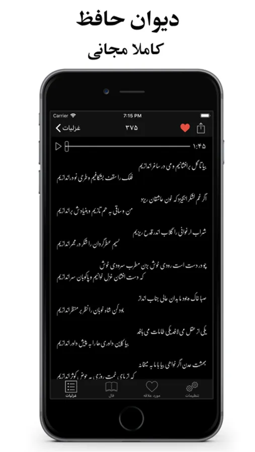 As always this is a complete collection of Hafez's poetry and we are happy to announce that they are now accompanied with audible narration for every entry. All narrations are playable in the background and can be rewind, paused or skipped through your iPhone's command center.