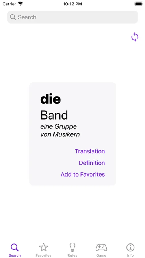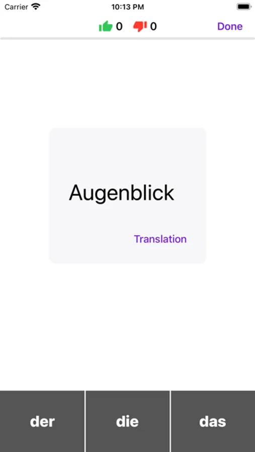 Type the first few characters of a noun and see the article immediately. The app contains a dictionary with more than 17,000 nouns. Optionally, you can display the definition of the noun.