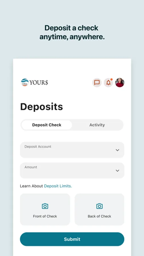 TVFCU’s YOUR$ is an easy, convenient and secure experience. Start managing all of your money effortlessly with TVFCU’s YOUR$ App today!