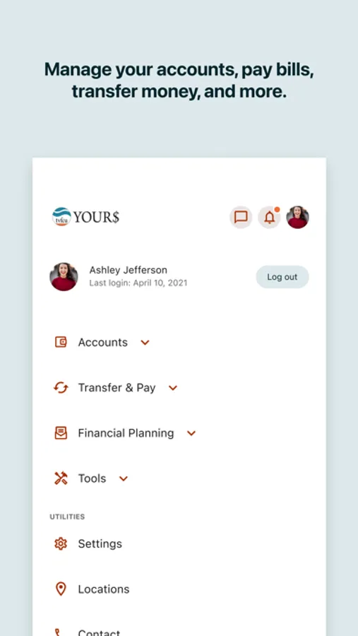 TVFCU’s YOUR$ presents a modern, seamless account experience with easy to find features and customizable navigation to manage your accounts on your computer, your phone, your tablet, or any smart device.