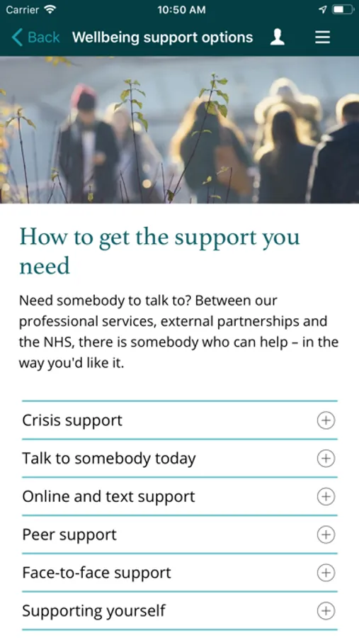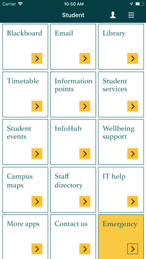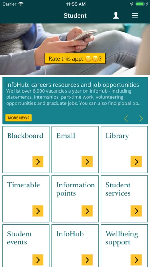 Quick access to Information Points, Wellbeing Support, Info Hub, IT help and many other student services.