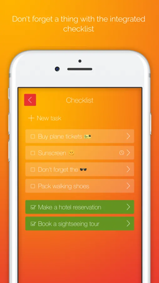 Check the temperature and weather indicator to pack accordingly. Don’t forget a thing with the integrated travel checklist. Use the reminders to complete your tasks in time.