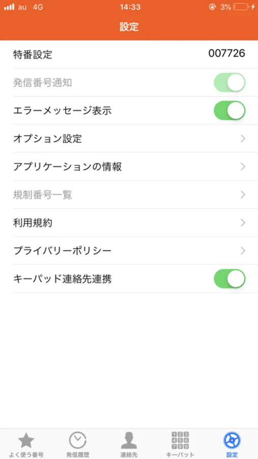※ 推奨設定:「設定」>「プライバシー」>「連絡先」>「auオフィスナンバー:オン」