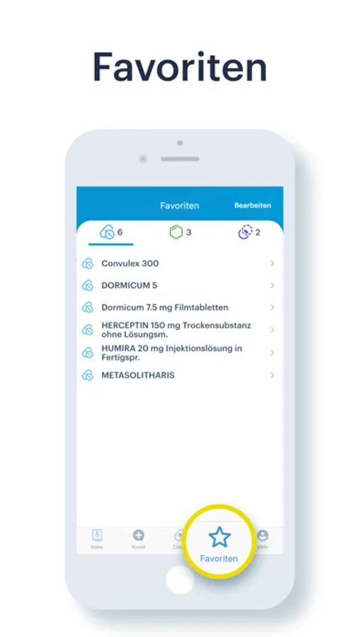 - Favoriten: Lege individuelle Arzneimittel für den schnellen Zugriff fest