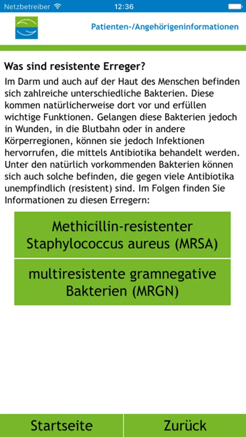 Diese App soll Patienten, ihren Angehörigen und allen an der Behandlung beteiligten Berufsgruppen möglichst einfach und zügig wertvolle Informationen zum Umgang mit multiresistenten Bakterien liefern.