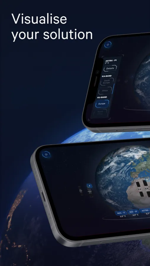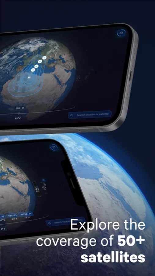 The SES GEO app allows you to explore the whole satellite fleet and coverage with ease. Wheter you are looking for coverage maps in the area where you need service or want to navigate 360 degrees around the globe, you can access satellite data and coverage maps for each satellite in just a few taps.
