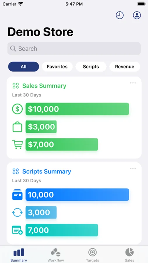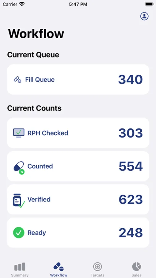 View a dashboard of your pharmacy’s key statistics, workflow counts, targets, and sales. This mobile app connects you to your pharmacy’s business data from anywhere. Stay connected even when you are out.