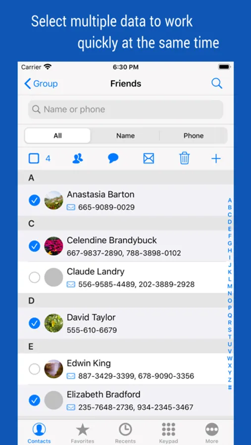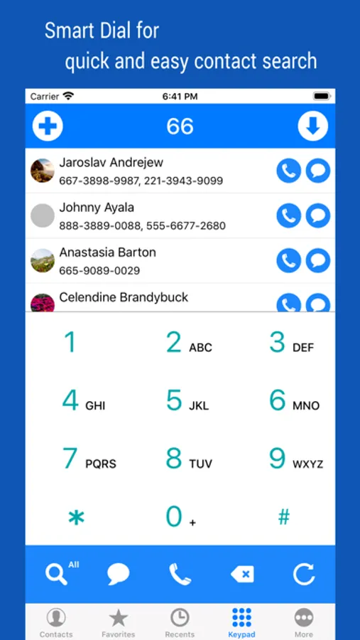 Additionally, advanced search features, group messaging, group email, bulk delete contact, organize contacts, contact backup, quick favorites, speed dial, smart search dial, etc.