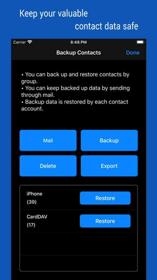 Contact data is valuable information to you. The contacts App uses the system's data, so it should work correctly and handle your data securely.