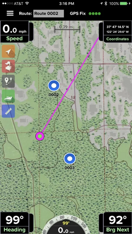 • Easy one-touch Waypoint and Route creation. Pre-plan your routes at home or create them in the field with equal ease. Just touch the screen to create new waypoints and routes.