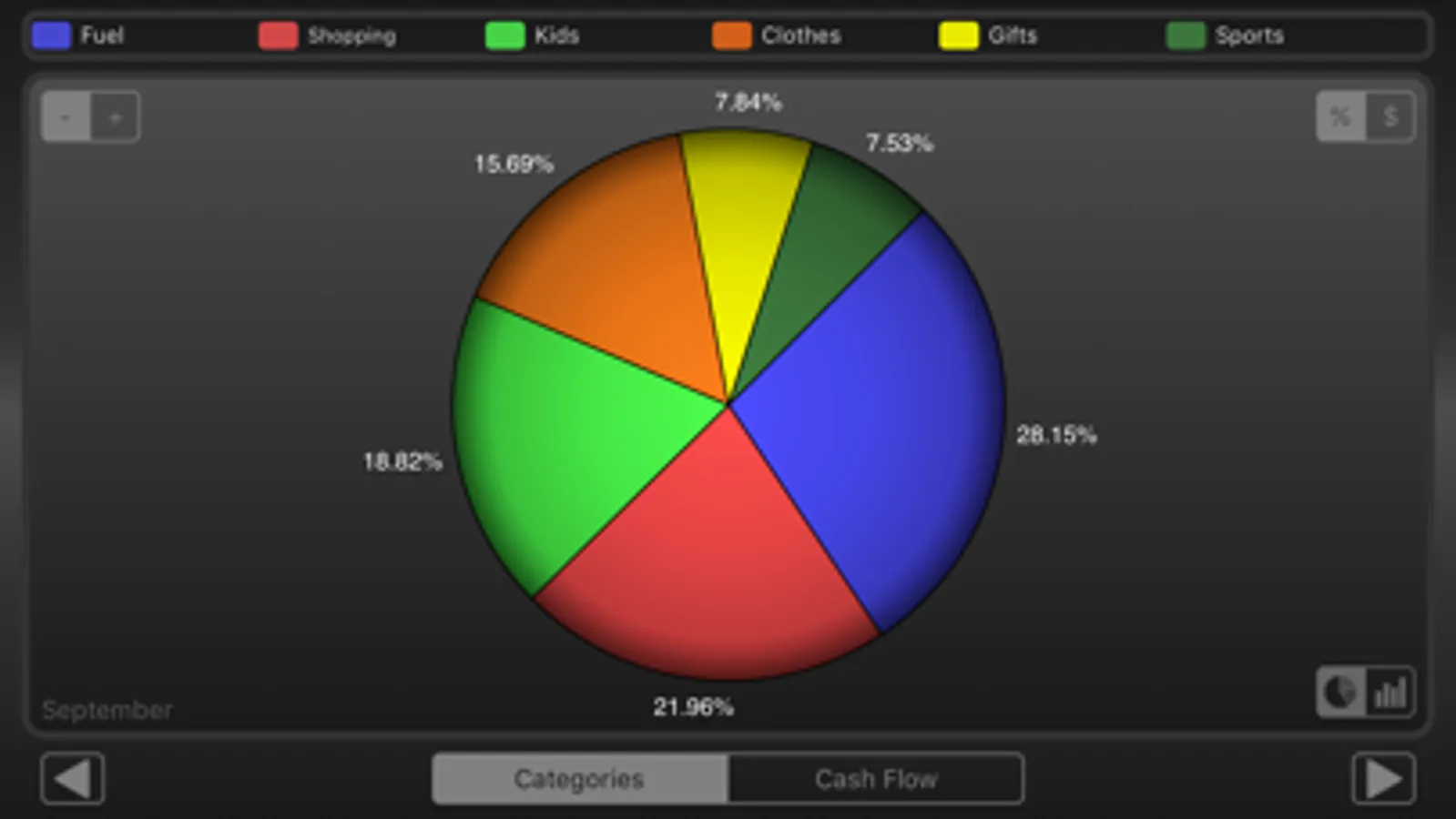- editable spending and income categories