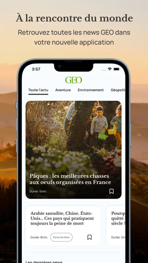 Retrouvez dans cette application gratuitement toute l'actualité de GEO.fr :