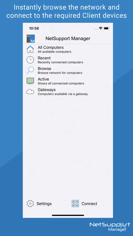 The NetSupport Manager Control for iOS provides mobile remote control for existing NetSupport Manager remote control users remotely from any iPad, iPhone or iPod.