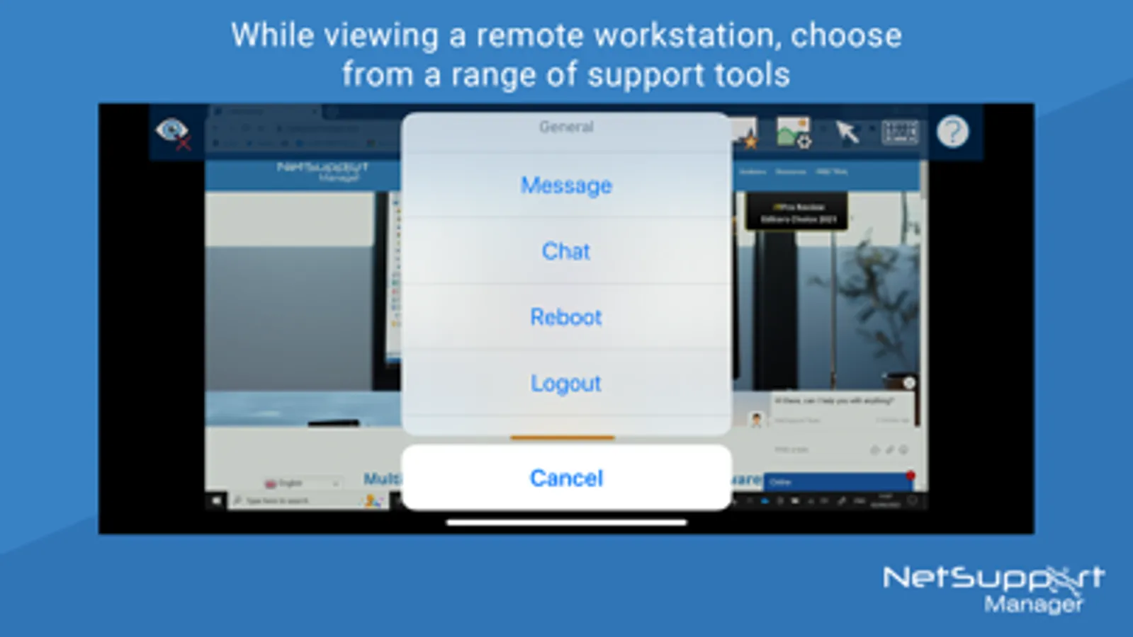 The NetSupport Manager Control provides full remote control, chat and message capabilities of any remote PC running an existing NetSupport Manager Client (version 11.04 or later).